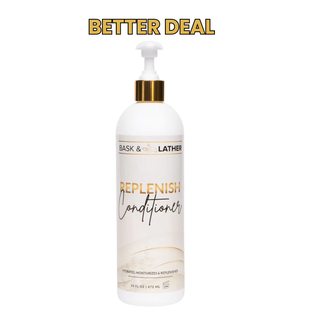 Our XL Replenish Conditioner is formulated with high-quality, premium, all-natural ingredients, free from silicones, mineral oils, sulfates, parabens, fragrances, dyes, and animal testing.
